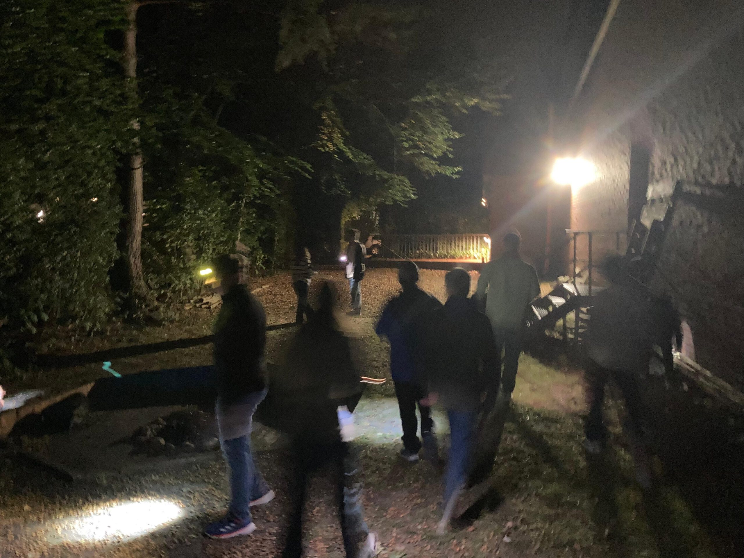 Im Anschluss gab es eine Stärkung mit Kaffee und Kuchen, bevor es für alle Teilnehmenden ins Schwimmbad ging. Währenddessen durften die Eltern einmal Teil einer Gruppenstunde sein, die im Rahmen des Elternprogramms angeboten wurde. Am Abend stand dann noch der Stufenwechsel an. Jede Gruppe musste auf dem Gelände bestimmte Zutaten finden, damit dann ein Aufstiegsgetränk in der passenden neuen Stufenfarbe gebraut werden konnte.